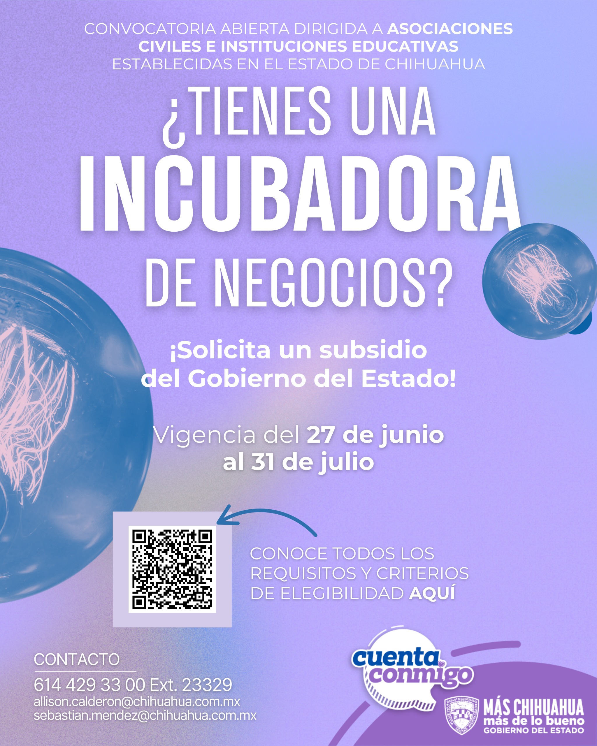 Este programa tiene como objetivo fortalecer el ecosistema emprendedor del estado, mediante el respaldo a instituciones educativas y asociaciones civiles legalmente constituidas en Chihuahua, que cuenten con programas consolidados para la incubación o aceleración de empresas.