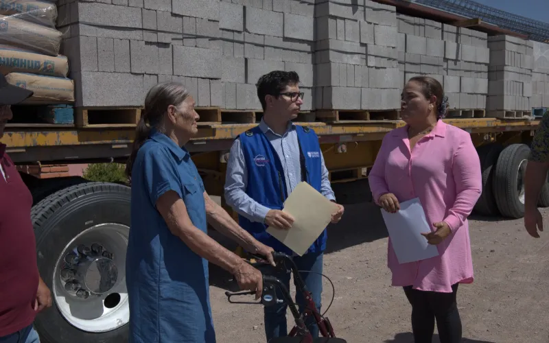 La Comisión Estatal de Vivienda, Suelo e Infraestructura (Coesvi) entregó material de construcción a la señora Genoveva, una mujer de 90 años de edad que perdió su casa y pertenencias durante un incendio ocurrido en Satevó.