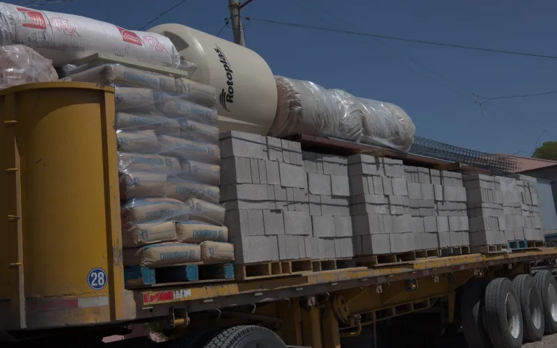 Entre los insumos se incluye block de concreto, cemento, cerámica, estructuras de aluminio para puertas y ventanas, láminas, vigas, polines, cableado eléctrico, así como tubería para la instalación hidráulica.