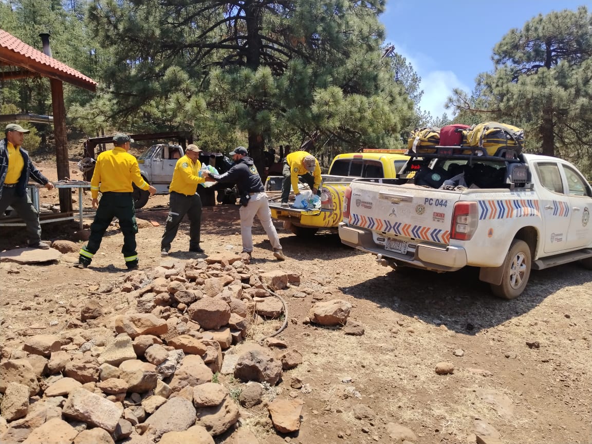 Los trabajos son encabezados por personal de la Comisión Nacional Forestal (Conafor), la Secretaría de la Defensa Nacional (Sedena), la Coordinación Nacional de Protección Civil, y la Secretaría de Desarrollo Rural.