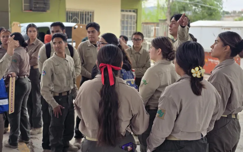 Un grupo de aproximadamente 60 estudiantes de dos licenciaturas y de Técnico Superior Universitario (TSU), se dieron cita en las instalaciones de “La Casa de los Toros Bravos”, de donde partieron a los sectores siniestrados.