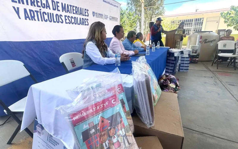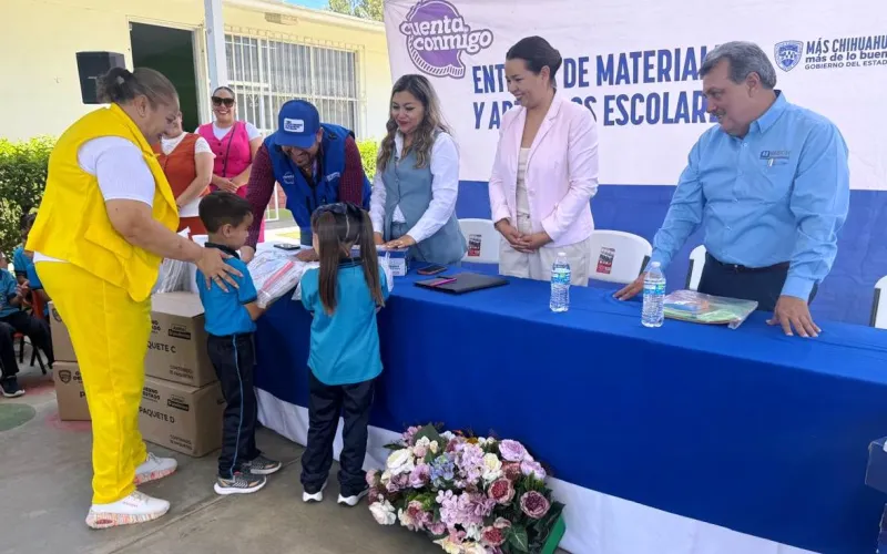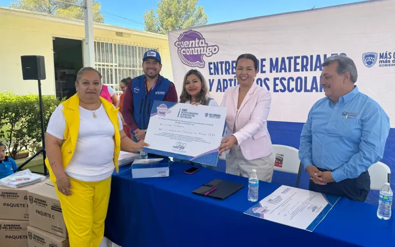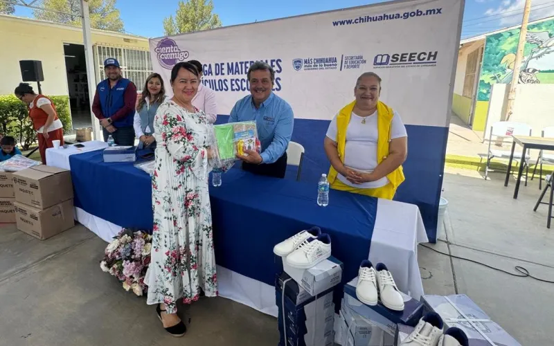 La Secretaría de Educación y Deporte (SEyD), en conjunto con Servicios Educativos del Estado de Chihuahua (SEECH) distribuyó pares de tenis y paquetes de útiles escolares a estudiantes de educación Básica de Aldama.