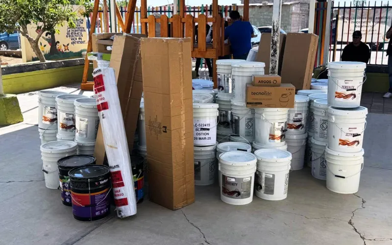 Además se repartieron cubetas de pintura, impermeabilizante y membrana de refuerzo, cemento, tinacos, inodoros, entre otros, para el mantenimiento de seis escuelas del subsistema federalizado.
