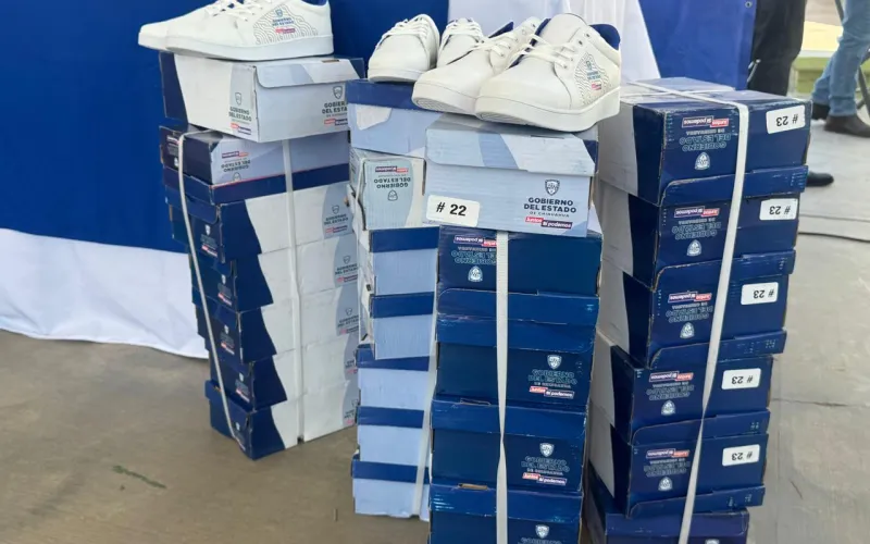 En total se distribuyeron 1,000 pares de tenis y 5 mil 480 paquetes de útiles escolares para estudiantes de Preescolar, Primaria y Secundaria.