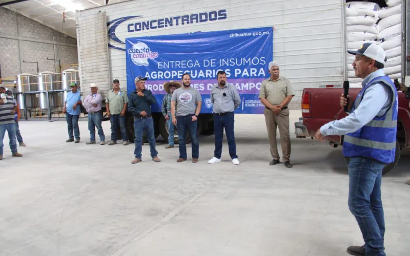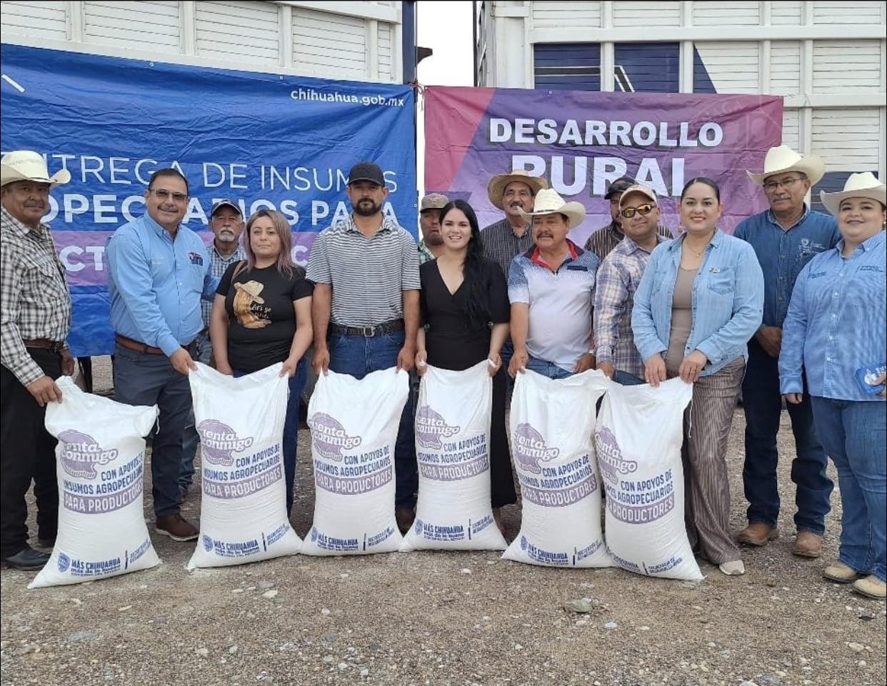 La Secretaría de Desarrollo Rural (SDR) informó que, como parte del apoyo emergente instruido por la gobernadora Maru Campos para mitigar los efectos de la sequía, continúan las entregas de insumos agropecuarios en todo el estado.
