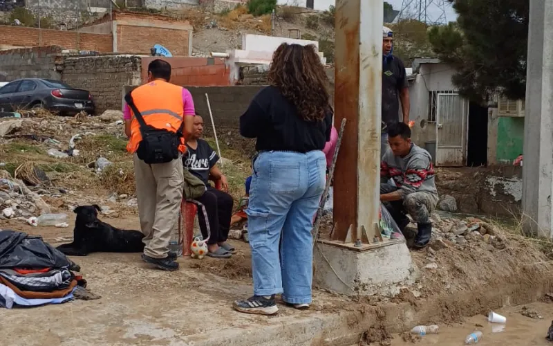 Personal de la Secretaría de Salud de Chihuahua, realizó recorridos en las zonas impactadas por las precipitaciones registradas en las últimas horas en el sector norponiente de Ciudad Juárez.