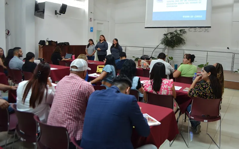 El adiestramiento fue impartido por especialistas de Servicios Educativos del Estado de Chihuahua (SEECH), donde se orientó a los participantes sobre la identificación temprana de niñas, niños y adolescentes en situaciones de riesgo, así como los pasos para su protección.