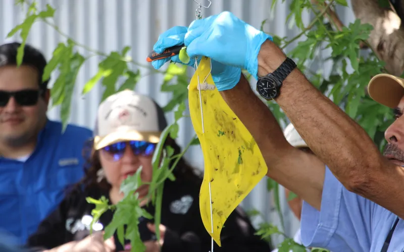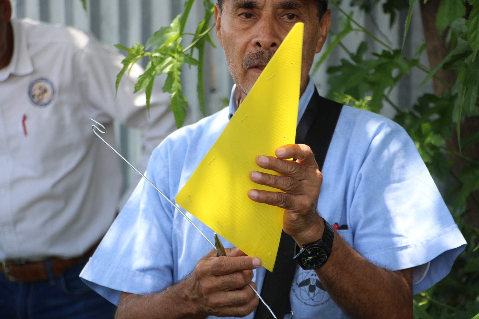 Los dispositivos fueron donados por el Servicio Nacional de Sanidad, Inocuidad y Calidad Agroalimentaria (Senasica) y consisten en la colocación de un banderín amarillo, impregnado con adhesivo y dos componentes atrayentes que permiten captar la presencia del insecto.