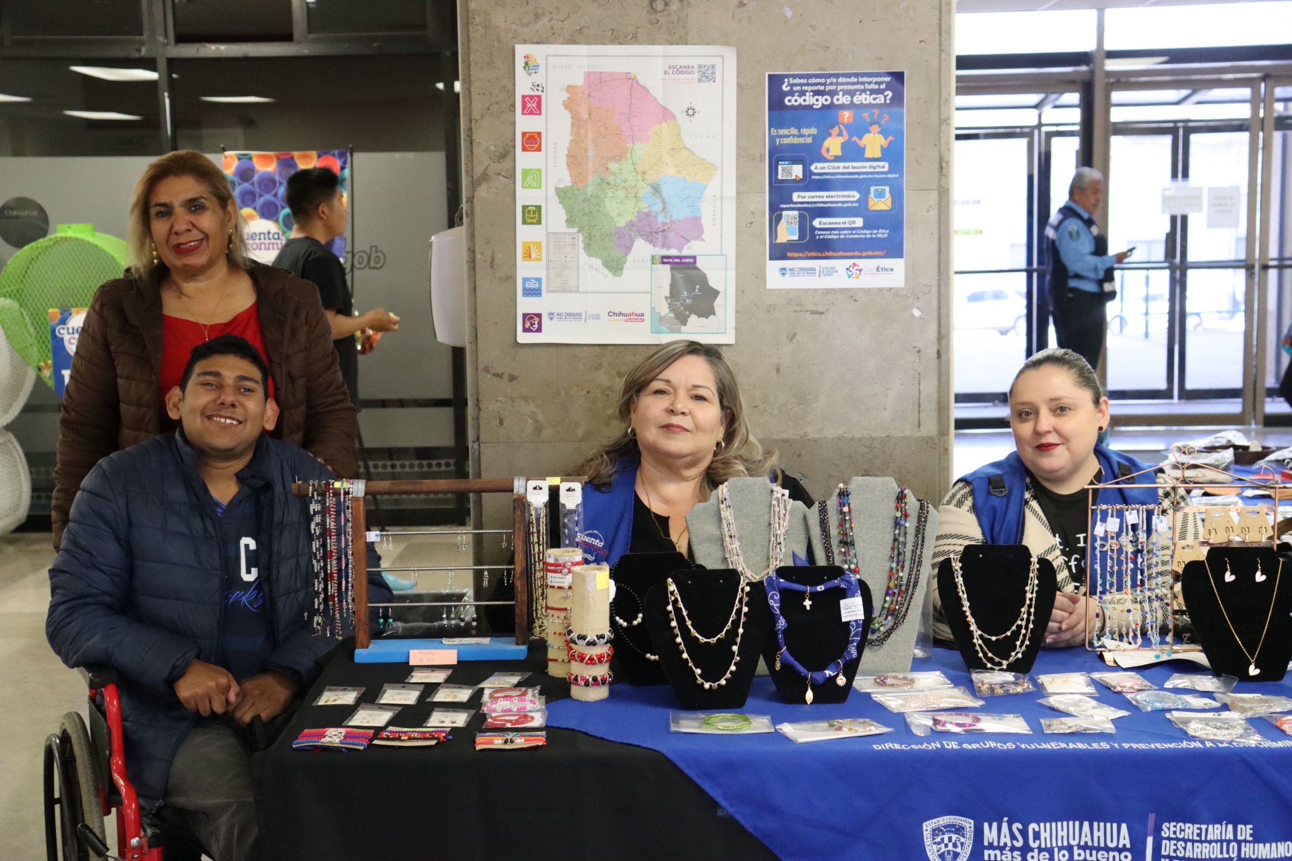 La Secretaría de Desarrollo Humano y Bien Común (SDHyBC) concluyó en el edificio Héroes de la Revolución, la exposición y venta de productos elaborados por usuarias y usuarios, del Centro de Capacitación para Personas con Discapacidad.