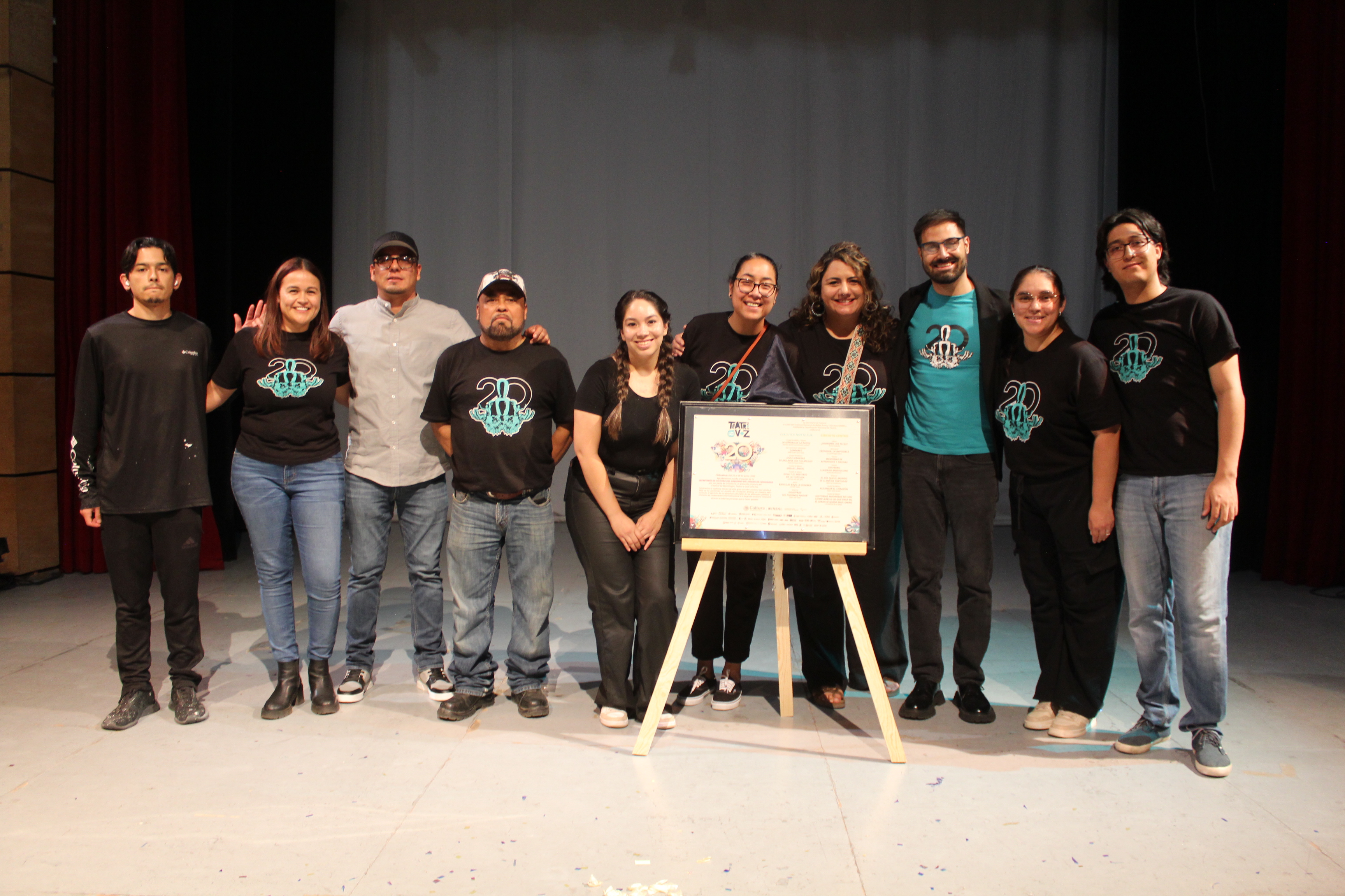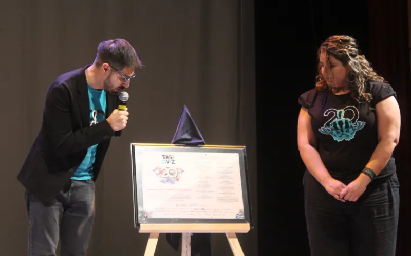 Durante el evento de clausura, Mariana Reyes Nogueira, directora General de Desarrollo Cultural de la dependencia y Alfredo Flores, enlace con los Estados de la Coordinación Nacional de Teatros, develaron una placa conmemorativa del vigésimo aniversario del Festival, el cual ha llevado una programación cultural a todo el país desde el año 2005.