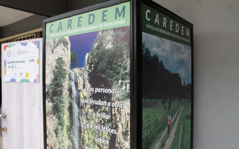 Explicaron que este espacio es un cubículo instalado dentro del plantel escolar, el cual ofrece múltiples opciones para el manejo emocional; desde ejercicios de respiración y escritura terapéutica hasta música relajante y una mini biblioteca con textos motivacionales.