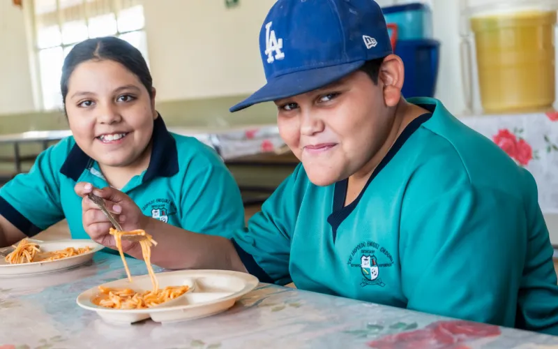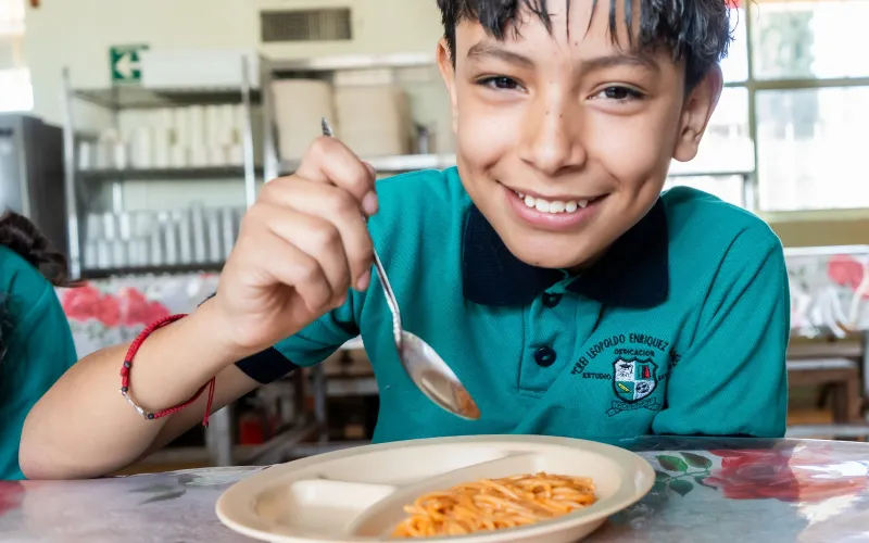 Las niñas y niños en situación de vulnerabilidad económica reciben diariamente desayunos calientes, lo que les permite incrementar el bienestar de su salud y su aprovechamiento escolar.