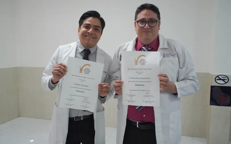 Los médicos Carlos Francisco Gaytán Carrera y Eduardo Lugo Jiménez obtuvieron sus respectivos títulos que los acreditan como especialistas en Psiquiatría, luego de concluir sus residencias en el Hospital de Salud Mental “Dr. Ignacio González Estavillo”.