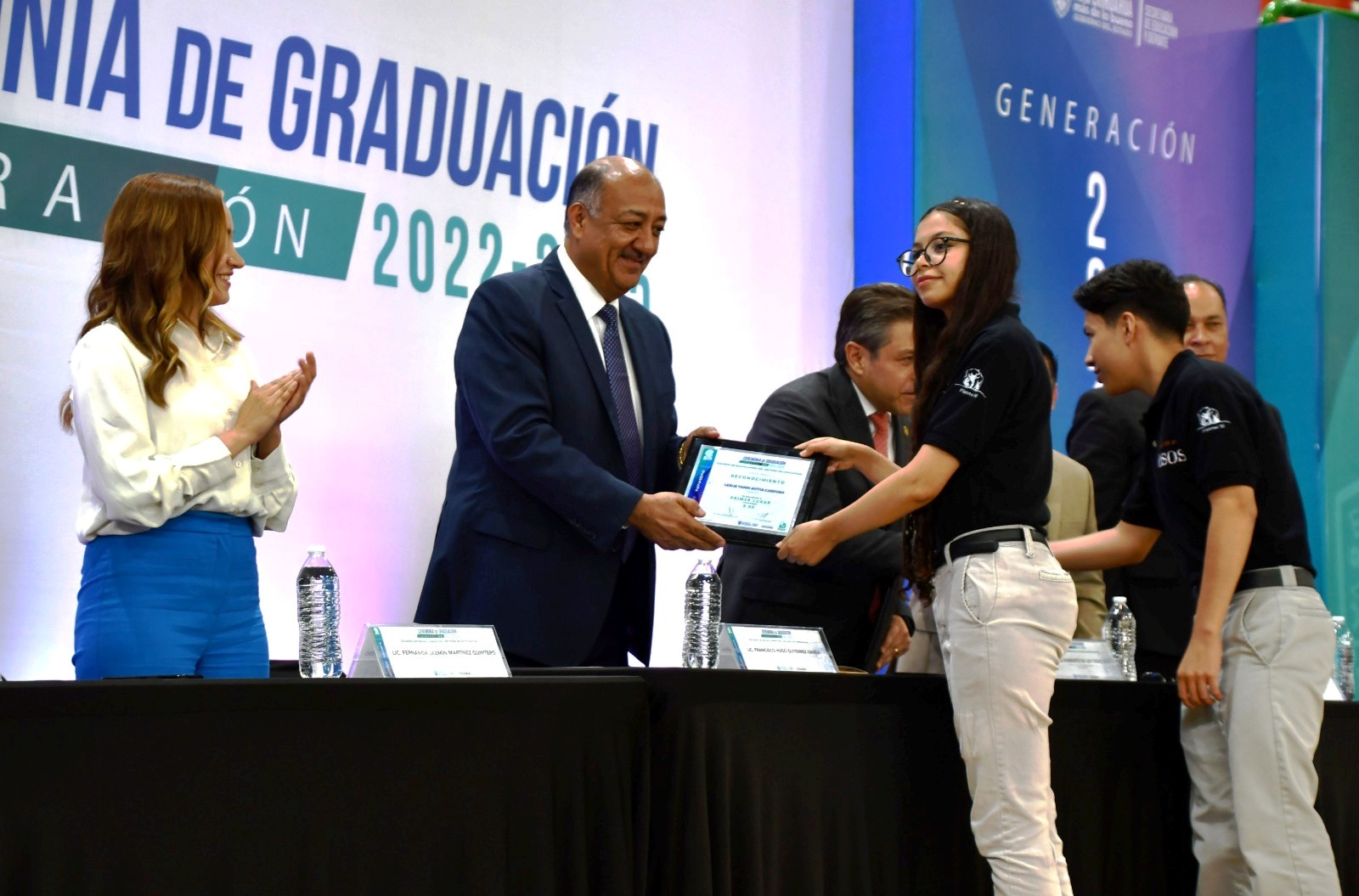 “Esto es un trabajo en equipo, su empeño viene acompañado del apoyo incondicional de sus madres y padres, pero también de una plantilla docente que siempre estuvo al pendiente de ustedes. Muchas felicidades y a seguir cosechando éxitos”, dijo.