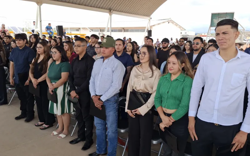 Durante la ceremonia se contó con la presencia de Martha del Carmen Sosa González, directora académica del CECyTECH; Ulises García Soto, titular de la Oficina de Enlace Educativo de la SEP en Chihuahua; Gloria Jannette Muñiz Villalba, jefa del Departamento de Enlace Educativo de la SEyD; y Sherlyn Terrazas Gándara, egresada de la generación 2020-2023.