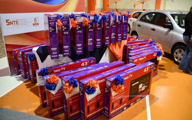 La rifa se realizó durante la pasada celebración del Día de la Maestra y el Maestro, y entre los regalos incluyó 14 vehículos último modelo, 40 pantallas de televisión y 40 laptops, con una inversión de 3 millones 990 mil 336 pesos, para personal docente y de apoyo del subsistema federalizado.