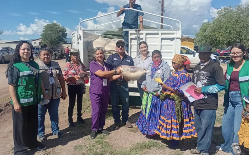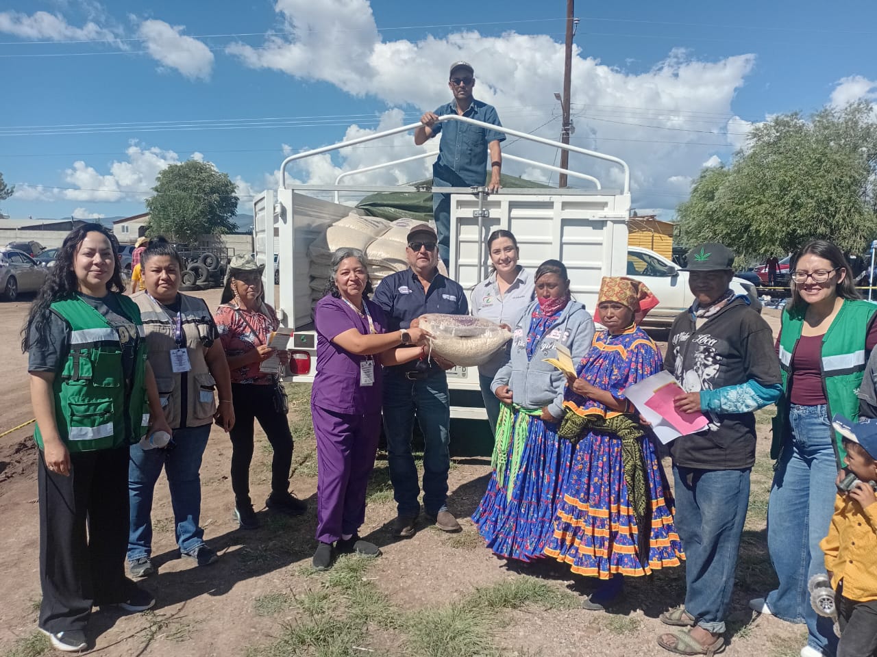 El Gobierno del Estado, por conducto de la Secretaría de Salud, en coordinación con la Secretaría de Pueblos y Comunidades Indígenas (SPyCI), y el DIF Estatal, entregó apoyos alimentarios en Namiquipa, donde también se vacunó a la concurrencia contra el sarampión.