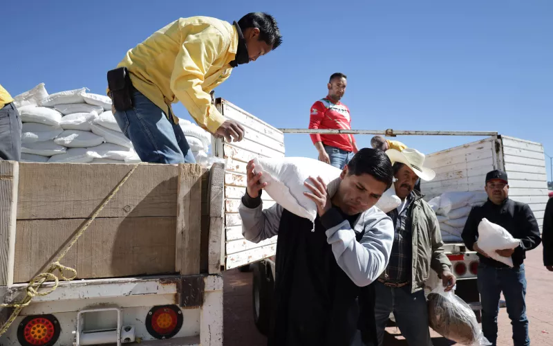 Las familias recibieron dos paquetes alimenticios, cada uno de los cuales contiene 30 kilogramos de maíz y 10 de frijol.