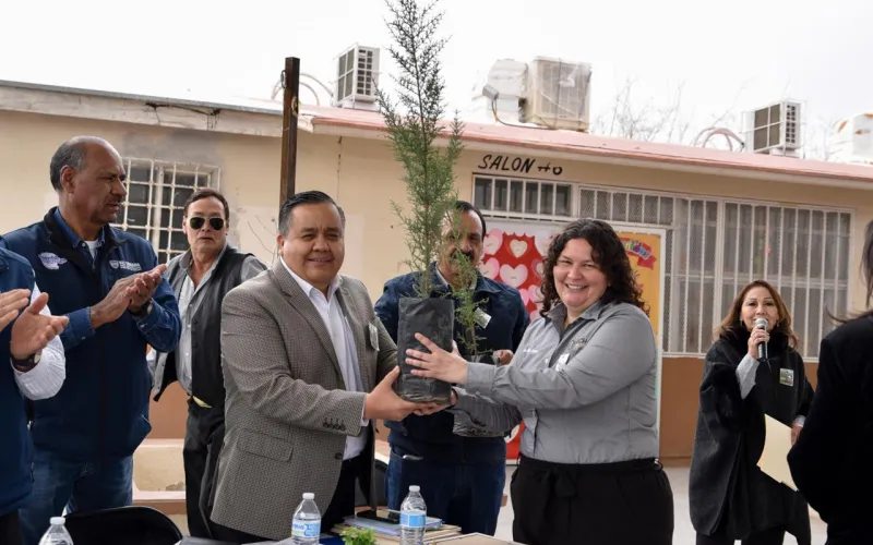 Durante el evento, Carlos Ortiz Villegas, representante de la Oficina de Gubernatura en Ciudad Juárez, señaló que esta acción fortalece la conciencia ambiental y la responsabilidad social desde edades tempranas, al impulsar espacios con mayor sombra, aire limpio y condiciones más adecuadas para el aprendizaje.