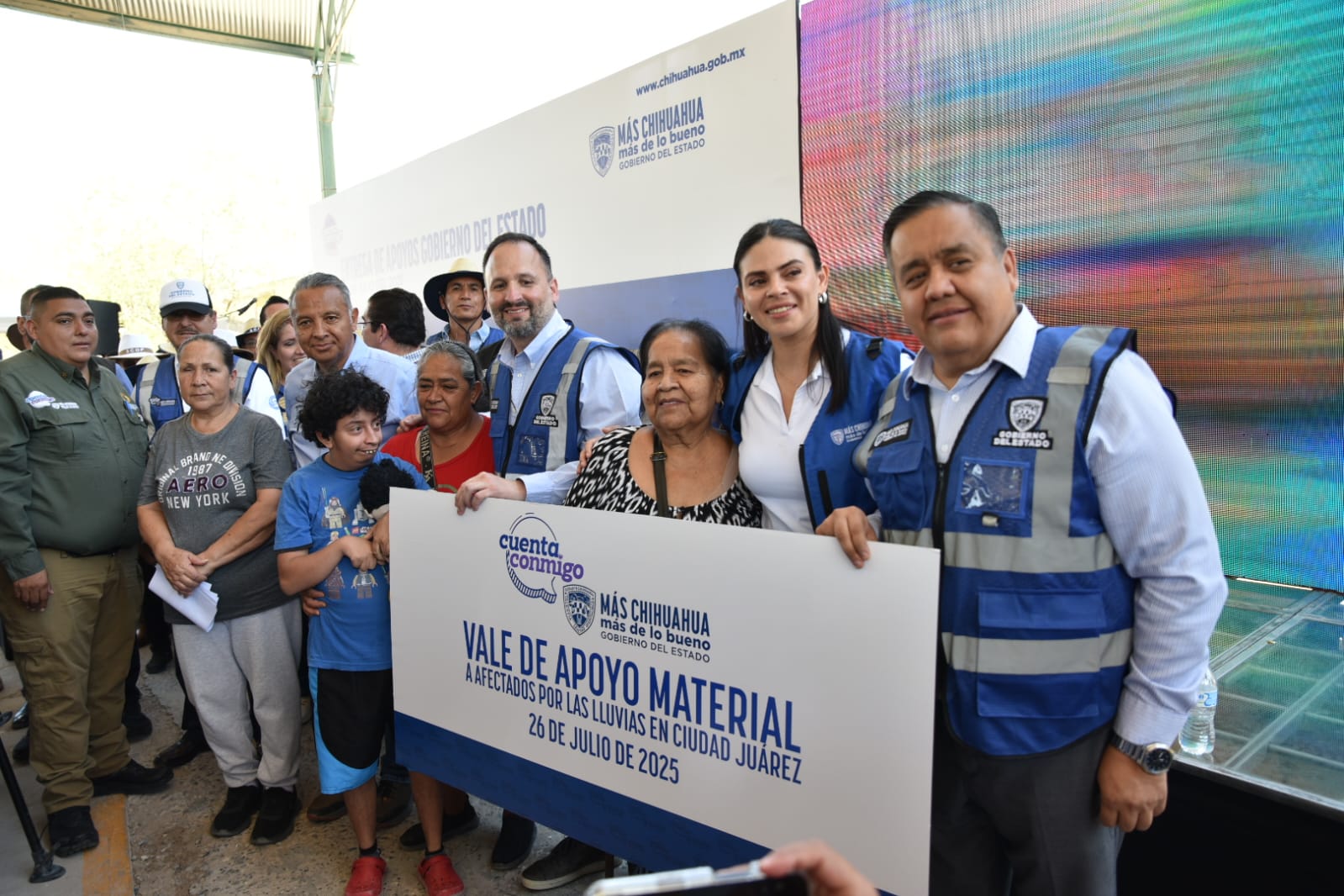 En respuesta a las afectaciones provocadas por las intensas lluvias registradas durante los meses de junio y julio, el Gobierno del Estado entregó este sábado apoyos a familias de la zona norponiente de Ciudad Juárez, como parte de las acciones contempladas en las recientes Declaratoria de Emergencia y Declaratoria de Desastre.