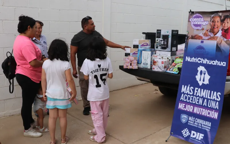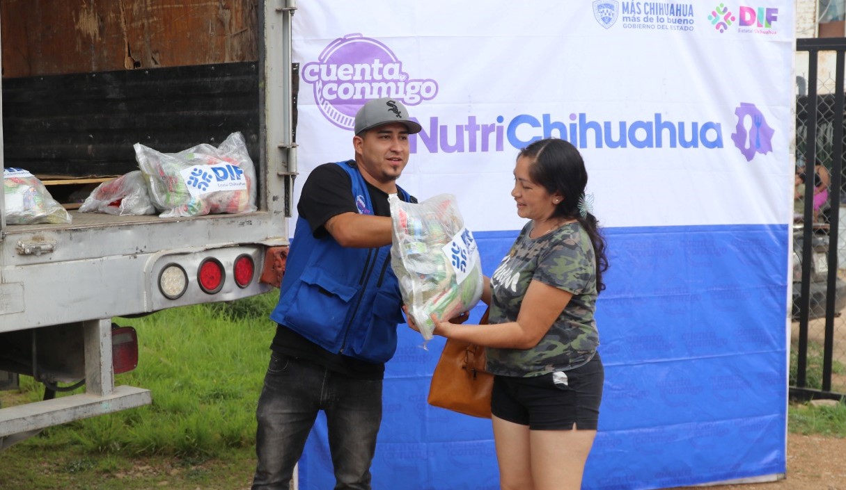 Con la entrega de apoyos alimentarios, el DIF Estatal incluyó al programa NutriChihuahua en la jornada de vacunación contra el sarampión, que se desarrolla en distintos puntos de ciudad Cuauhtémoc.