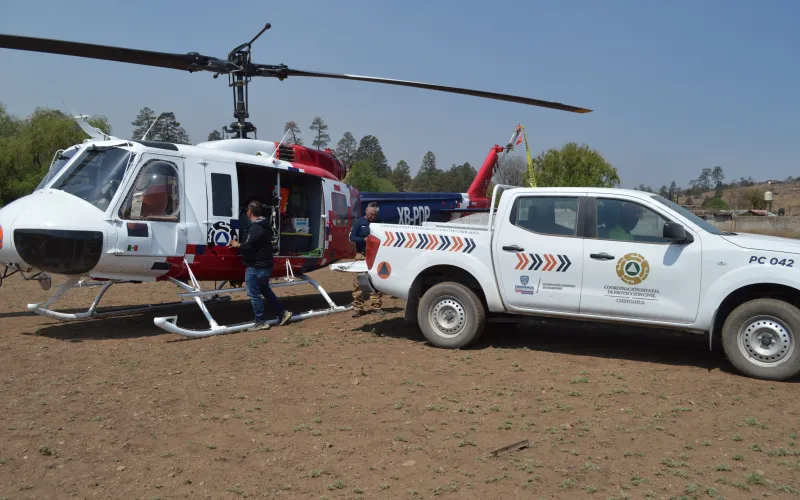La Secretaría General de Gobierno, informa que la Coordinación Estatal de Protección Civil (CEPC) desplegó un operativo aéreo, para reforzar las acciones contra los incendios forestales que permanecen activos en el municipio de Madera.