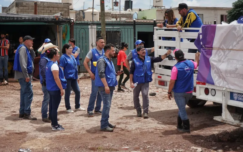 Se dispersaron 400 despensas, 250 paquetes de hule negro, 250 láminas, 250 polines, 250 kits de limpieza e higiene, así como 50 colchonetas, a vecinos de las colonias Vistas Cerro Grande, El Mimbre y El Porvenir 3.
