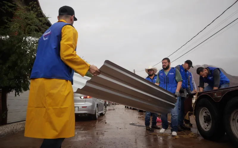 Comentó que el equipo de “Chalecos Azules” se encargará de distribuir apoyos como paquetes alimentarios con insumos de fácil preparación y que no requieren cocción, además de láminas, pliegos de hule negro y kits de limpieza e higiene que incluyen escoba, trapeador, recogedor, papel higiénico, jabón en polvo y crema dental.