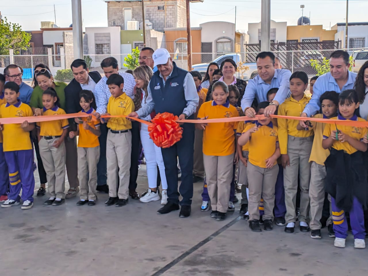 Finalmente, las autoridades educativas y municipales inauguraron oficialmente la cancha de futbol rápido de la Secundaria Estatal No.3014, en la colonia del Empleado, con un monto estatal de 4 millones 697 mil 826 pesos, provenientes del Fondo de Aportaciones para el Fortalecimiento de las Entidades (FAFEF).
