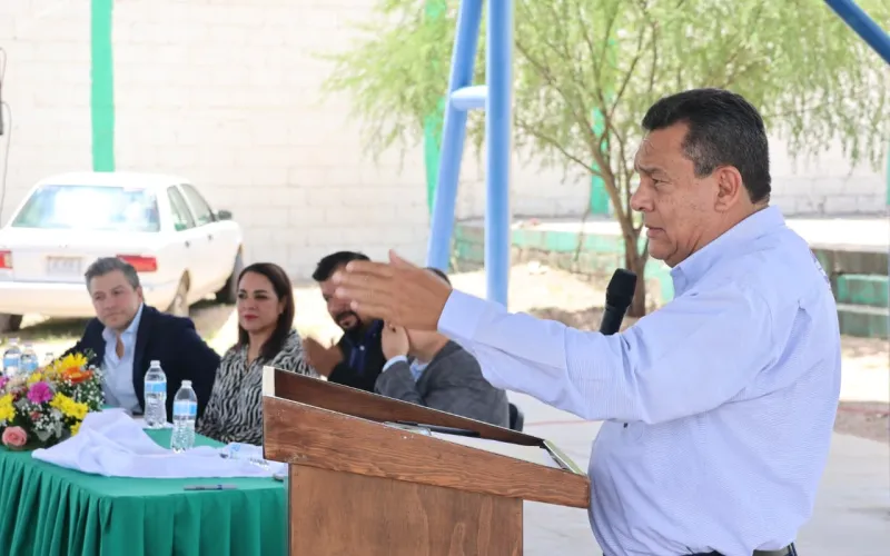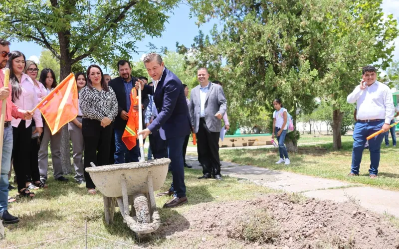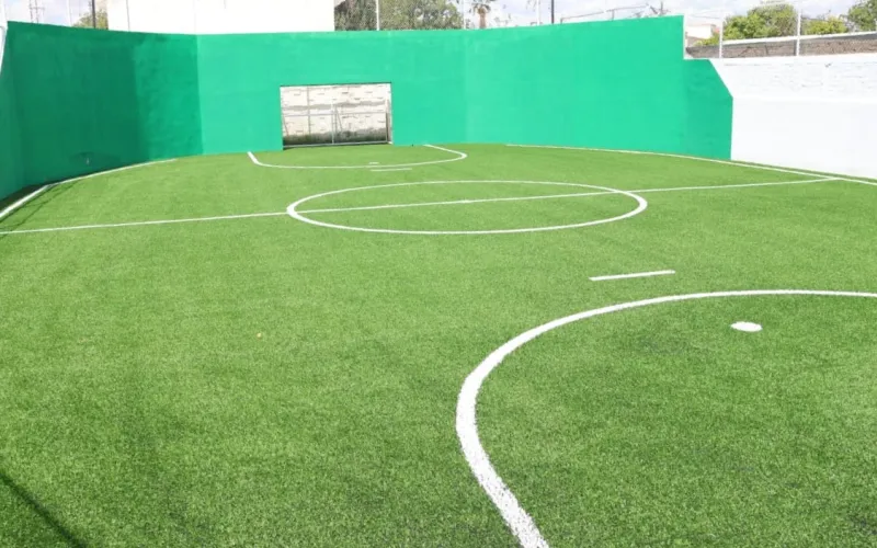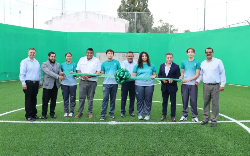 En el plantel 20 de Jiménez se inauguró la segunda etapa de la cancha de futbol rápido, que comprende la instalación de pasto sintético, iluminación, así como malla y pasto perimetrales.