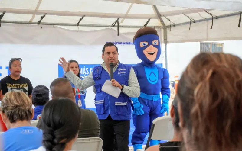 El director de la JMAS Chihuahua, Alan Falomir, mencionó que con esta obra se da cumplimiento de la instrucción de la gobernadora Maru Campos, de avanzar en la cobertura total en agua potable y drenaje en la capital del estado.