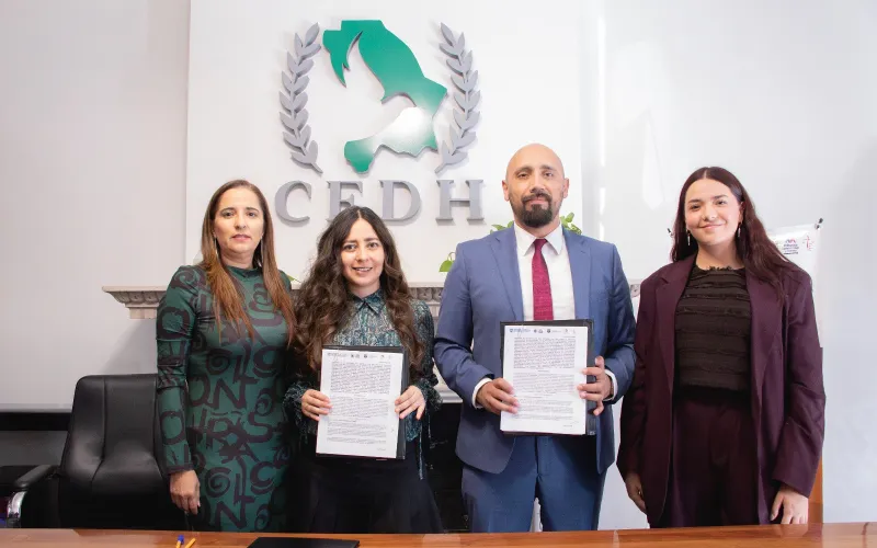 El presidente interino de la CEDH, Alejandro Carrasco Talavera, y la titular del del departamento de Institucionalización de la Perspectiva de Género, Mara Fuentes Martínez, coincidieron en trabajar de manera conjunta en acciones que contribuyan a la erradicación de la violencia de género.