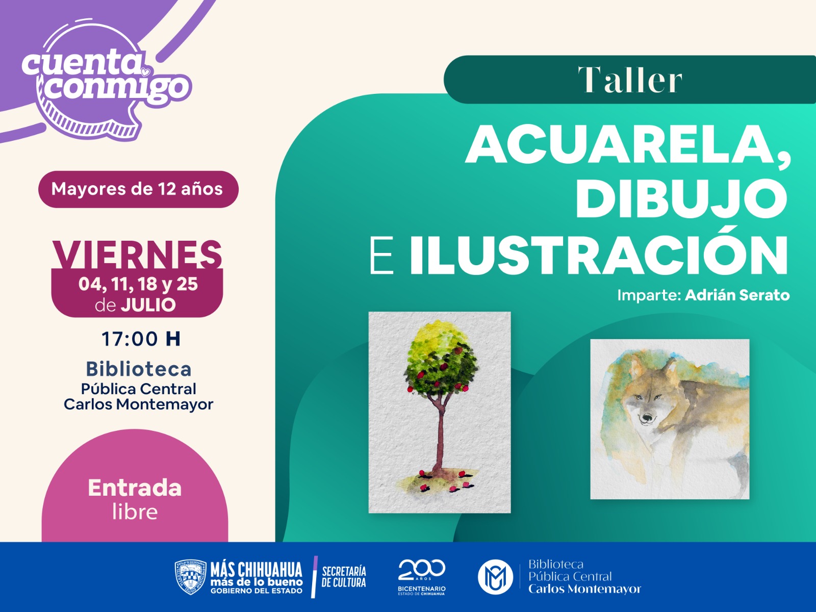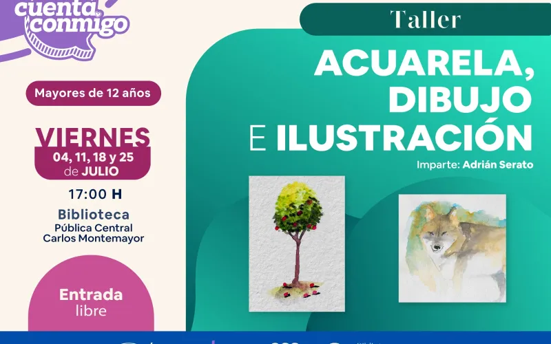 Los viernes de julio, igualmente a las 5 de la tarde, la biblioteca abrirá sus puertas para quienes deseen tomar el taller de acuarela, dibujo e ilustración, impartido por Adrián Serato, donde los asistentes podrán explorar y expresar su creatividad, dirigido a mayores de 12 años en adelante.