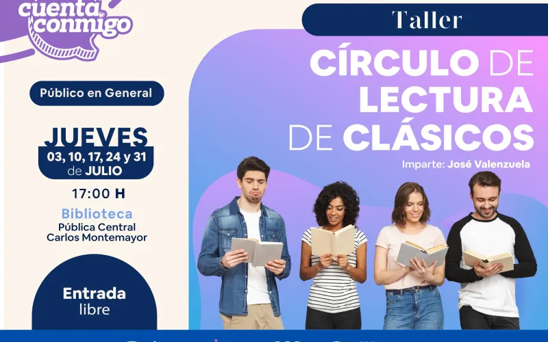 El círculo de lectura de clásicos, se realizará todos los jueves de julio, a las 5 de la tarde, y será impartido por José Valenzuela. En este espacio se prevé que los apasionados por la lectura puedan compartir con otros su apreciación por la palabra escrita.