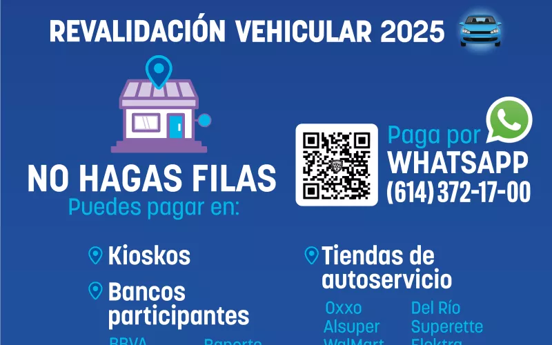 La Secretaría de Hacienda recuerda a las y los contribuyentes que pueden realizar su pago a través de la página ipagos.chihuahua.gob.mx, donde pueden también descargar su referencia para saldar en bancos y tiendas de autoservicio.