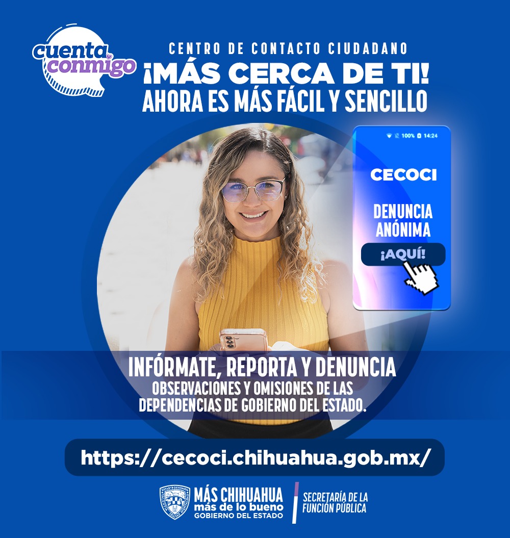 El CECOCI está disponible para toda la población en el sitio: https://cecoci.chihuahua.gob.mx, además de contar con atención telefónica.