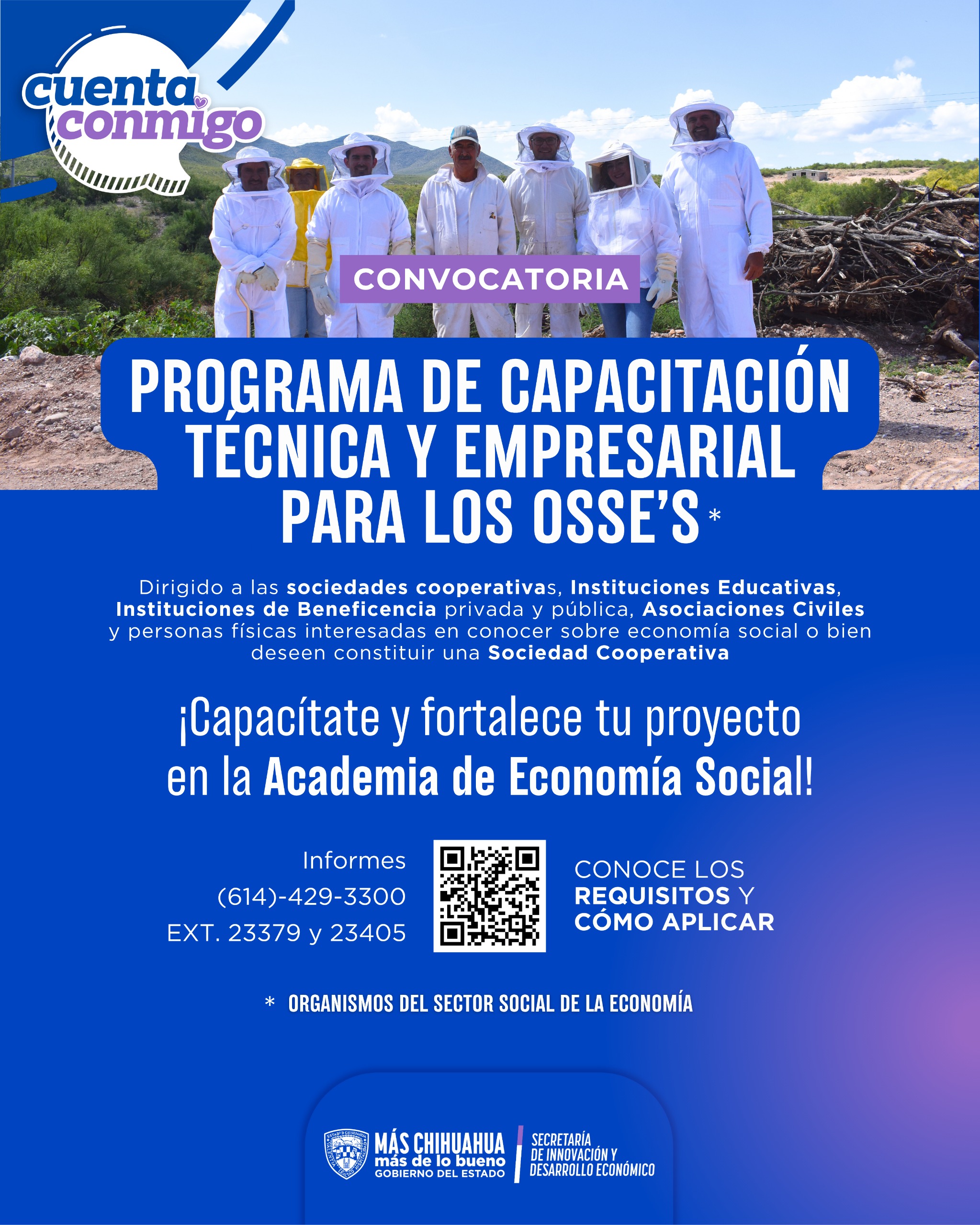 La Secretaría de Innovación y Desarrollo Económico (SIDE), invita a participar en el “Programa de Capacitación Técnica y Empresarial para los Organismos del Sector Social de la Economía”.