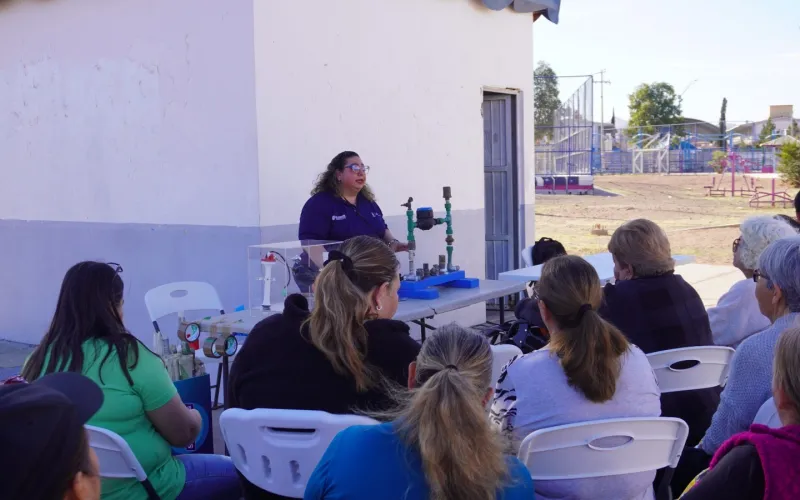 La Junta Municipal de Agua y Saneamiento (JMAS) de Chihuahua llevó el curso “Plomería para Mujeres” a la colonia Villas del Real, donde integrantes del club del abuelo aprendieron sobre el funcionamiento de las redes internas y externas de agua potable en los domicilios.