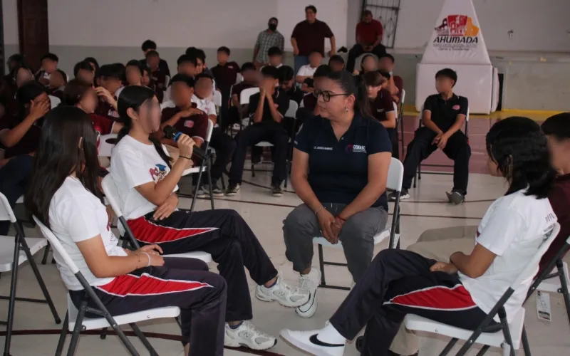 Las alumnas y alumnos de la Secundaria Estatal número 3033 recibieron su capacitación en el Gimnasio Municipal Bertha Chiu, donde conocieron los riesgos de conductas antisociales como el acoso escolar, el ciberbullying, las adicciones, la violencia, entre otros.