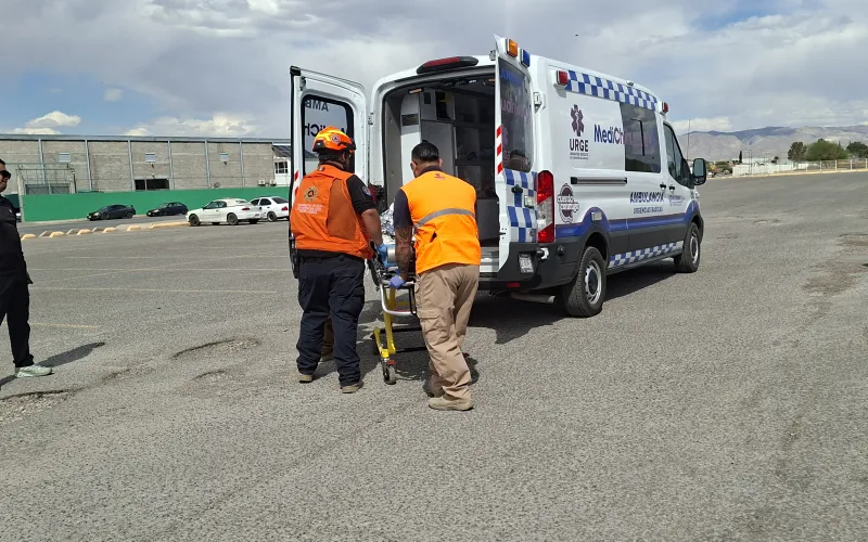 La aeronave aterrizó de manera segura en las inmediaciones de la Deportiva Sur en Chihuahua, donde ya lo esperaba una unidad de la Unidad de Rescate del Gobierno del Estado (URGE), cuyo personal realizó el traslado terrestre final hacia el nosocomio especializado.