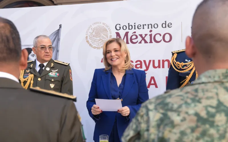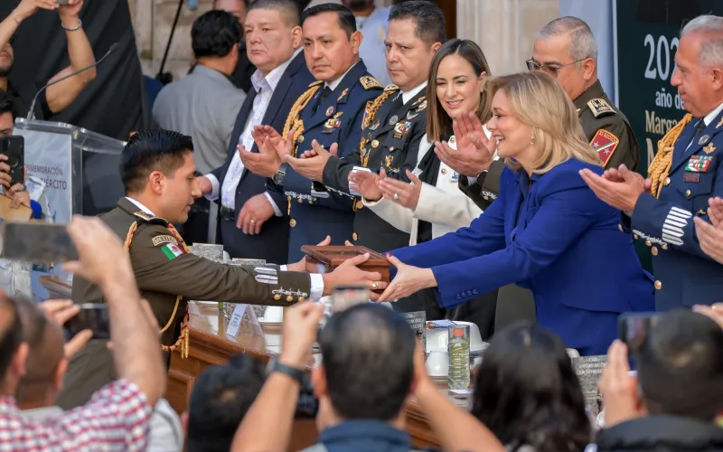 El general de Brigada de Estado Mayor y comandante de la 5/a Zona Militar, Felipe González Moreno, agradeció a la Gobernadora por acompañarlos en la conmemoración de esta organización, que subrayó, busca ser un pilar y garante para la soberanía nacional, con el compromiso de proteger al país y a la ciudadanía.