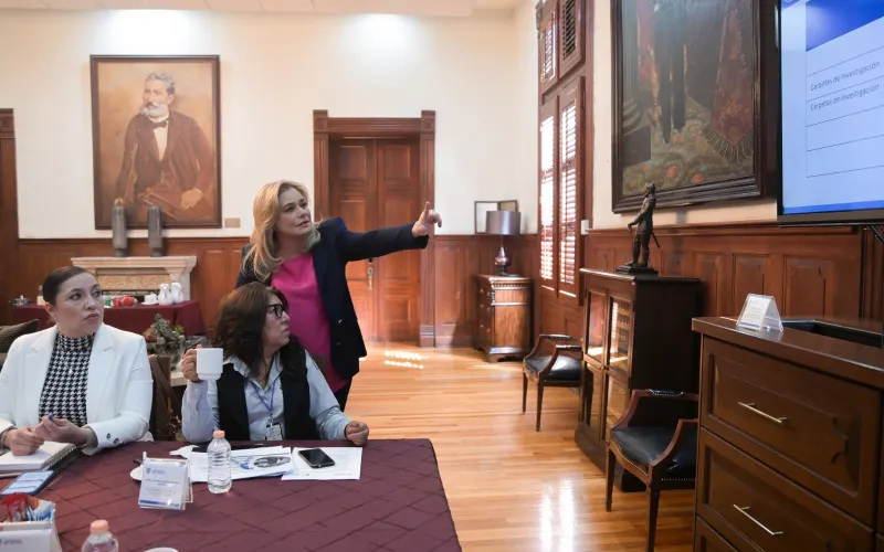 La gobernadora Maru Campos encabezó este lunes en Palacio de Gobierno, la sesión de la Mesa Estatal de Construcción de Paz, en la que llamó a las autoridades presentes a seguir con los trabajos coordinados para reforzar las estrategias de seguridad en la entidad, sobre todo las enfocadas en la protección a las mujeres.