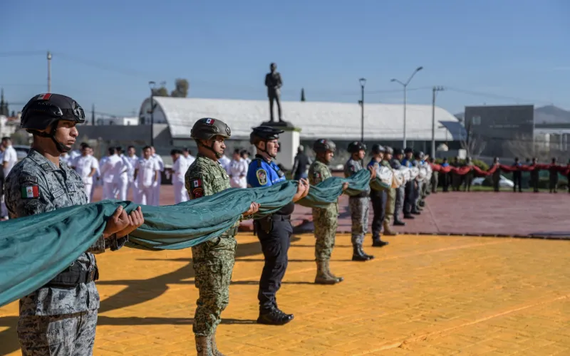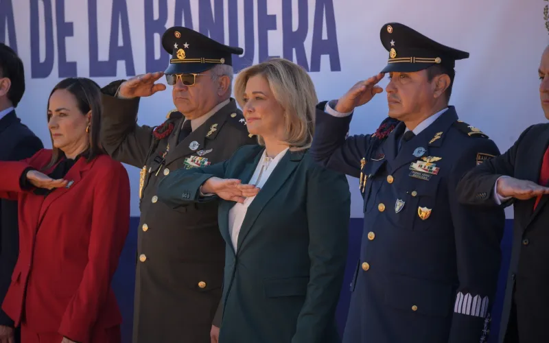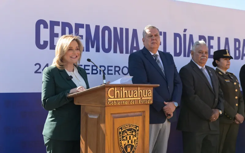 En el marco de la conmemoración por el 205 aniversario del Día de la Bandera, la gobernadora Maru Campos exhortó a estudiantes de 18 planteles de la capital, a creer en un México de instituciones sólidas, de paz y de respeto a la ley.
