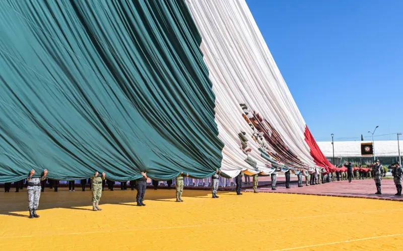 La titular del Ejecutivo dijo que con este acto se rinden honores al símbolo más alto de la nación: “Nuestra bandera, en cuyos colores vive nuestra historia, así como el compromiso de cada generación de entregar un México mejor al que recibió”.
