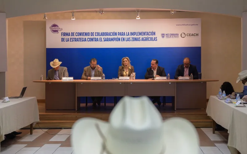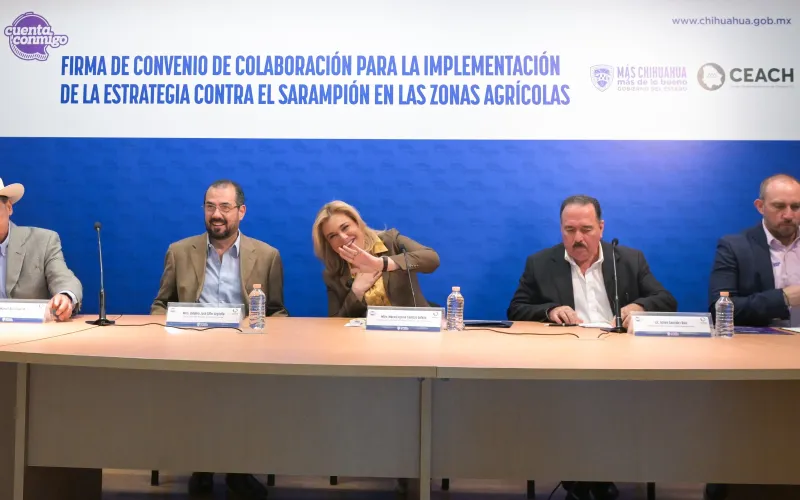 La gobernadora Maru Campos firmó un convenio de colaboración con el Consejo Estatal Agropecuario (CEACH), por medio del cual se integrarán a la campaña de vacunación que el Gobierno del Estado implementa en toda la entidad.