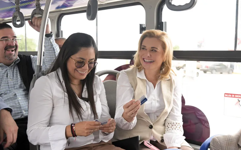 La Gobernadora anunció además que desde hoy, ya se cuenta con una red externa para la compra y recarga de tarjetas generales JuárezBus en 300 tiendas de conveniencia, lo que permite a los usuarios cargar saldo en sus credenciales en puntos fuera del sistema de transporte.