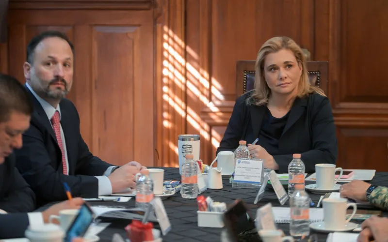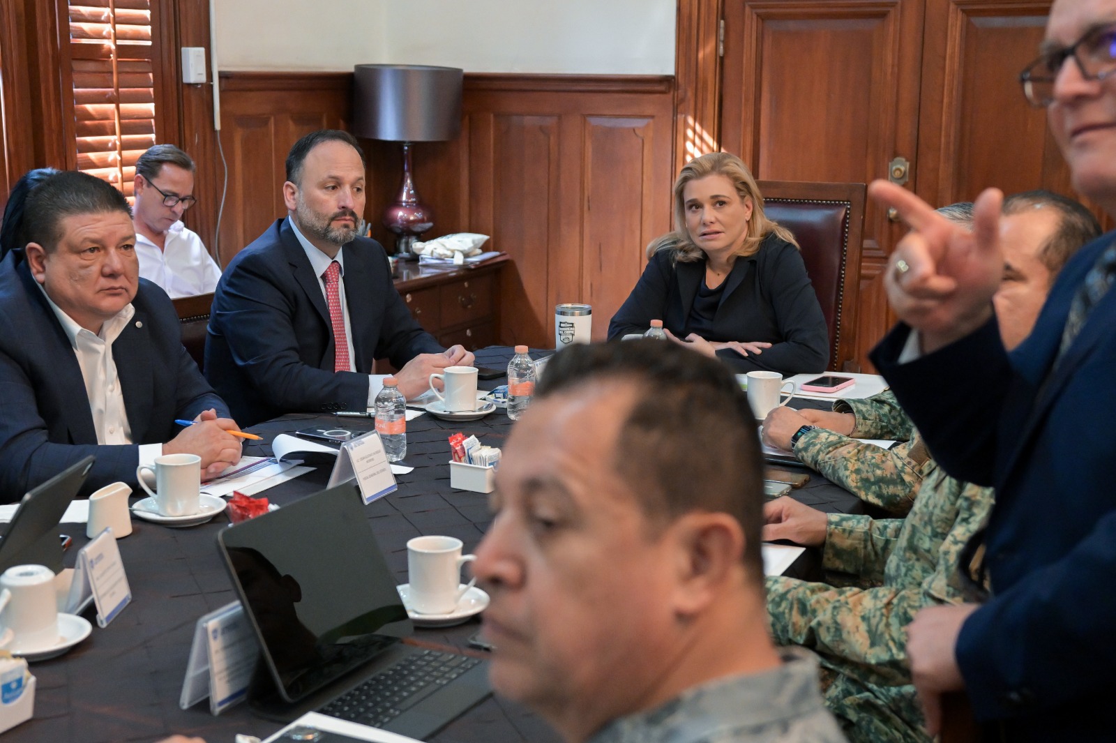 La gobernadora Maru Campos encabezó este lunes en Palacio de Gobierno la reunión semanal de la Mesa de Coordinación de Construcción de Paz, donde refrendó el trabajo de colaboración con las autoridades federales, para garantizar la tranquilidad de los chihuahuenses.