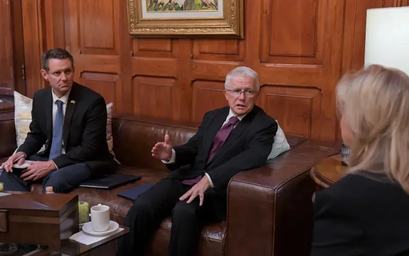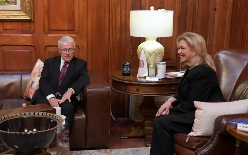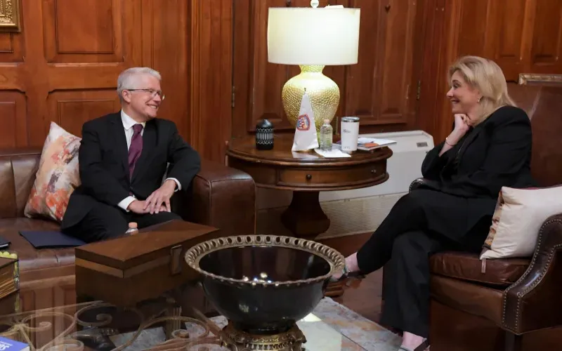 La gobernadora Maru Campos sostuvo una reunión de trabajo con el cónsul general de E.E. U.U en Ciudad Juárez, Rafael Foley, con quien abordó temas relacionados con la seguridad en la región fronteriza.