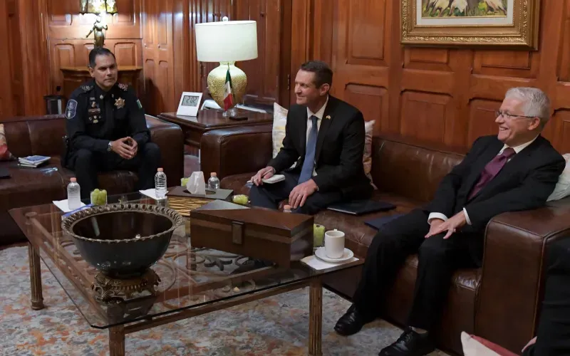 También estuvieron en este encuentro Benjamin Kalt, jefe adjunto de Asuntos Políticos y Económicos del Consulado, y el secretario de Seguridad Pública Estatal, Gilberto Loya Chávez.