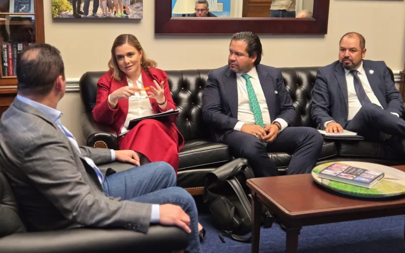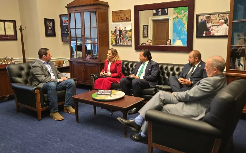 Como parte de su gira de trabajo por Washington D. C., la gobernadora Maru Campos sostuvo una reunión con el congresista Tony Gonzales, representante del Distrito 23 de Texas, con quien dialogó sobre asuntos prioritarios en materia ganadera, comercial y de seguridad fronteriza.